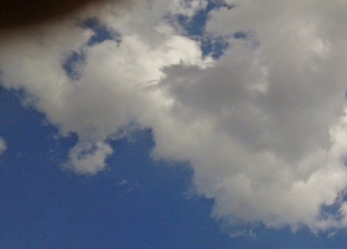 Vasco: - Tia. Olha aquela nuvem... Parece uma piranha-crocodilo. ... Agora parece um tubarão-martelo, mas zangado. A tia tirou a foto. Que saiu com aprovação do sobrinho, e que apontou logo para a boca do "tubarão-piranha" - Tás a ver oa dentes? E a foto foi esta...